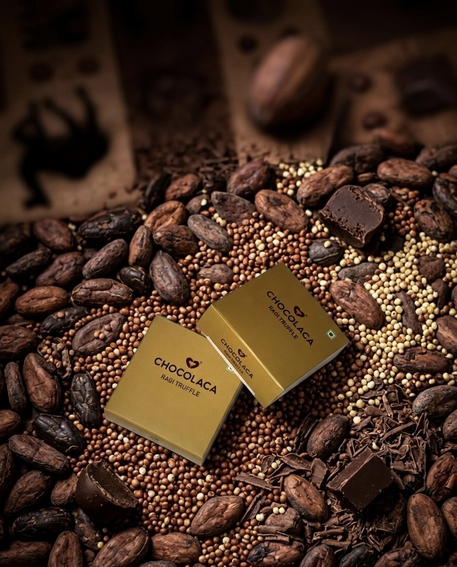 - RAGI TRUFLE CHOCOLATE PACKET: With 35 grams of chocolate and seven flavours, the chocolate pack is filled with Finger Millet Flour, Jaggery, Whole Wheat Flour, Chick Pea Flour, Rice Bran Oil, Edible Salt, and Milk Chocolate.